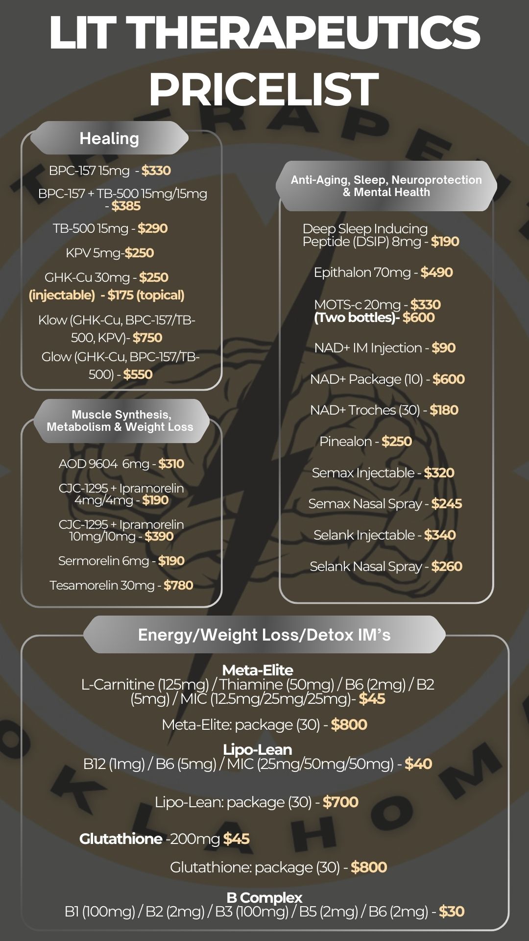 We offer a curated selection of peptides and nutraceuticals designed to support health, performance, and recovery at the cellular level. Our products focus on metabolic support, longevity, and overall optimization using science-backed formulations. Each option is selected for quality, safety, and effectiveness to support long-term, sustainable results.